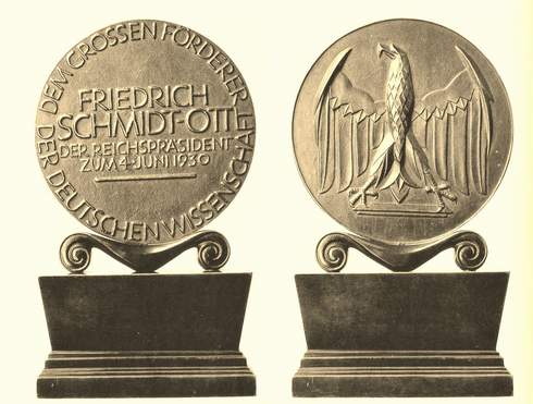Nachdem es im deutschen Kaiserreich unzählige Titel und Orden verliehen worden waren und ein Mensch ohne diese kaum etwas galt, bestimmte die Verfassung der Weimarer Republik im Artikel 109: „Alle Deutschen sind vor dem Gesetze gleich. Männer und Frauen haben grundsätzlich dieselben staatsbürgerlichen Rechte und Pflichten. Öffentlich-rechtliche Vorrechte oder Nachteile der Geburt oder des Standes sind aufzuheben. Adelsbezeichnungen gelten nur als Teil des Namens und dürfen nicht mehr verliehen werden. Titel dürfen nur verliehen werden, wenn sie ein Amt oder einen Beruf bezeichnen; akademische Grade sind hierdurch nicht betroffen. Orden und Ehrenzeichen dürfen vom Staat nicht verliehen werden. Kein Deutscher darf von einer ausländischen Regierung Titel oder Orden annehmen“. Ungeachtet dieser Bestimmungen durften bei feierlichen Gelegenheiten Orden und Ehrenzeichen angelegt werden, und auch mit der Verwendung und Vererbung von Adelstiteln war man nicht sehr pingelig. Was aber tun, wenn ein bedeutender Gelehrter oder Künstler und eine andere Persönlichkeit einen runden Geburtstag hat oder ein anderes Jubiläum gefeiert werden soll? Für diesen Zweck gab es den Adlerschild des Deutschen Reiches. Die aus einer bronzenen Gussmedaille bestehende Auszeichnung, die auf einem Bronzepodest stand, wurde zum erstenmal am 15. November 1922 vom Reichspräsidenten Friedrich Ebert dem bekannten Schriftsteller Gerhart Hauptmann verliehen. Mit einem Handschreiben gratulierte das Staatsoberhaupt dem 60 Jahre alt gewordenen Literaturnobelpreisträger, der die Ehrengabe dankbar annahm.