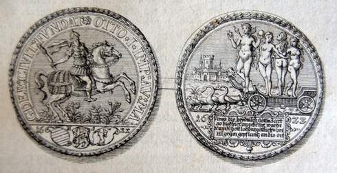 An die Gründung von Magdeburg durch Kaiser Otto den Großen erinnert der so genannte Hurenkarrentaler von 1622. Die allegorischen Ausgabe kommt als einfache und mehrfache Taler, aber auch als Klippen und sogar als Zehndukatenstücke im Gewicht von 31 b is 34 Gramm vor. Dargestellt ist auf der Vorderseite der reitende Kaiser, während auf der Rückseite vier nackte Frauen auf einem Wagen stehen, der von Schwänen gezogenen wird. Die Inschrift unter dieser Szene „Venus die heydnisch gottin zart. / so blos hier angebettet wart / Hegegen gepflantzt an dies: ort“ meint, dass der Ort ein Hort des Heidentums und der Lust war, bevor Kaiser Otto I. ihn zu einer christlichen, ganz der Sitte und Moral verpflichteten Stadt machte. In den „Münzbelustigungen“ von 1750 setzte sich Köhler mit dem Hurenkarrentaler auseinander und bildete ihn ab. „Unter einem solchen ehrbarn und züchtigen Volcke, welches die Hurerey und den Ehebruch äußerst verabscheuete, und mit der größten Strenge bestrafete, konte ein Römischer Hurentempel keinen Platz haben“, empört sich der Gelehrte. Der Auftrageber hätte bedenken sollen, „diesen Zucht und Ehrliebenden Teutschen angedichteten Heydnischen Greul mit einem so frechen und geilen Aufzug auf demselben vorzustellen, indem er damit veranlasset hat, daß man denselben auf allerhand Begebenheiten geschlagenen, und deswegen mit gewissen Beynahmen belegten Thalern, unter den schändlichen Nahmen des Hurenkarrenthalers beyzehlen kan“.