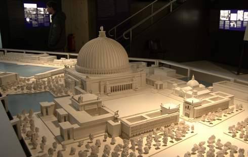 Um die irrwitzigen Utopien des Diktators zu verwirklichen, begann Albert Speer in seiner Eigenschaft als Generalbauinspektor für die Neugestaltung der Reichshauptstadt damit, vor und während des Krieges zahlreiche Wohn-, Geschäfts- und Verwaltungsbauten abzureißen. Ein Stadtplan in der Ausstellung zeigt, welche Bezirke „judenrein“ gemacht werden sollten. Die rund um den Kurfürstendamm und in Wilmersdorf aus ihren Wohnungen vertriebenen Bewohner wurden deportiert und ermordet, was aber bei der Beurteilung des 1942 zum Rüstungsminister ernannten Speer im Nürnberger Hauptkriegsverbrecherprozess kaum eine Rolle gespielt hat.