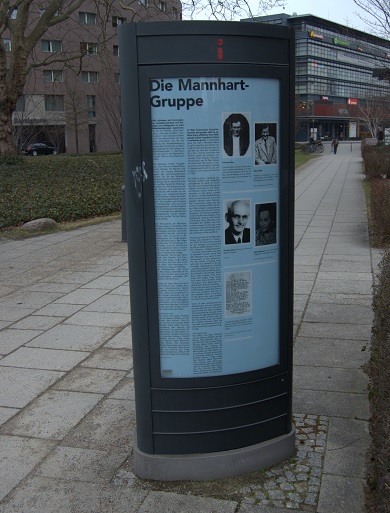 Gründer der Widerstandsgruppe war der Heiligenseer Arzt Dr. Max Klesse. Auch nach der Verhaftung und Ermordung von Gruppenmitgliedern konnte er seinen Kampf bis Kriegsende fortsetzen. Durch geschicktes, professionelles Verhalten und dank der Standhaftigkeit und des eisernen Schweigens der verhafteten Gruppenmitglieder, besonders des Bauarbeiters Otto Dressler, gelang es ihm, den Naziterror zu überleben. Das Bezirksamt Reinickendorf und die AG Stolpersteine Reinickendorf freuen sich, dass es in Zusammenarbeit mit der Firma Wall AG möglich wurde, in einer Informationssäule weitere Nachrichten über die Mannhart-Gruppe und ihr Wirken zu vermitteln. Mitglieder wohnten zumeist in Borsigwalde und trafen sich regelmäßig in der Wohnung von Fritz Lüben in der Schubartstraße 55, wo sich die ersten Jahre nach dem Zweiten Weltkrieg bereits eine Gedenktafel befand, die aber im Zuge einer Hausrenovierung entfernt wurde.