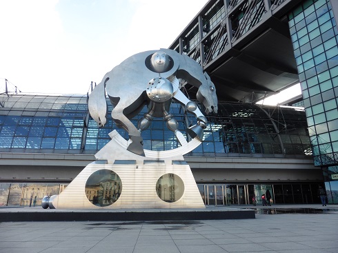 Auf dem nördlich des Hauptbahnhofs gelegenen Europaplatz steht die Skulptur "Rolling Horse", eine von Jürgen Goertz geschaffene Kombination von Mensch, Pferd und Eisenbahnrad. Als das Bildwerk 2007 eingeweiht wurde, gab es einen Aufschrei des Entsetzens. Indem es der damalige Bahn-Chef Hartmut Mehdorn vor Berlins größtem Bahnhof aufstellen ließ, habe er sich ordentlich vergaloppiert, hieß es. Das Werk sei von einer nicht zu überbietenden Provinzialität, ein Schlag ins Gesicht eines jeden Kunstfreundes. Außerdem wurde dem Gestalter vorgehalten, er habe nur sein "Sprinting Horse" wiederholt, das er bereits für den Hauptbahnhof in Heidelberg geschaffen hatte, weshalb es im Grunde nichts Neues darstellt. Der Ärger hat sich gelegt, das Alu-Pferd ist ein beliebtes Fotomotiv und stellt im Übrigen ein weiteres Beispiel dafür dar, dass auch Skulpturen im öffentlichen Raum heute wie früher öffentlicher Kritik ausgesetzt sind. Die Debatte über das springende Pferd am Hauptbahnhof hatte indes ihr Gutes - sie sicherte ihm und seinem Schöpfer, aber auch dem Bahnchef einige Aufmerksamkeit.