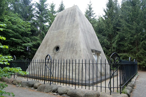 Prinz Heinrich, der nach eigenem Bekunden an elf Feldzügen seines Bruders teilgenommen hatte und seinen Gipfel als Befehlshaber in der Schlacht von Freiberg gegen die Reichsarmee und österreichische Truppen (1762) erklomm, rächte sich für die Zurücksetzung durch seinen Bruder, indem er 1791, fünf Jahre nach Friedrichs Tod, im Rheinsberger Schlosspark eine Pyramide zum Gedenken an preußische Militärs errichten ließ, die wie er unter der Despotie des Großen Friedrich zu leiden gehabt hatten. Das "Denkmal, allen preußischen Helden gewidmet, die durch Tapferkeit und Kenntnisse verdient haben, dass man sich ihrer ewig erinnere", so der Beginn der ins Deutsche übersetzten langen französischen Inschrift, erwähnt zahlreiche Offizieren und hebt dabei an erster Stelle August Wilhelm mit einem Bildnis besonders hervor. Pikanterweise ist auf dem Monument der Name Friedrichs II. nicht erwähnt. Bei der Weiherede bemerkte Heinrich ironisch, dessen selbst verfasster Lebensgeschichte und den Elogen anlässlich seines Todes sei nichts mehr hinzuzufügen. Friedrich-Verehrer haben es dem Prinzen angekreidet, dass er seinen königlichen Oberbefehlshaber auf der Säule nicht erwähnte, und schalten ihn, ein undankbarer Querulant zu sein. Viele auf der 2002, zum 200. Todestag des Prinzen Heinrich, restaurierten und durch Anbringung der verlorenen Buchstaben nun wieder kompletten Gedenksäule genannten Offiziere unterstanden im Siebenjährigen Krieg Heinrichs Befehl. Indem er sie ehrte, setzte er sich noch zu Lebzeiten ein eigenes Denkmal.