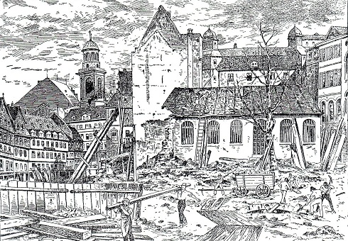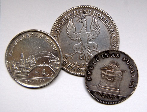 Selbstverständlich führt das Buch zu einigen Frankfurter Münzstätten, in denen anfangs kaiserliches und königliches, später auch städtisches Geld geschlagen wurde. An eine schon lange nicht mehr existierende Prägeanstalt erinnert nur noch der Name der Münzgasse, wo städtisches Geld mit dem einköpfigen Adler, Stadtansichten und dem Bildnis der "Francofurtia" sowie anlässlich von Dichterjubiläen und anderen Ereignissen hergestellt wurde. Nach der Okkupation der auch als zeitweiliger Sitz der Deutschen Nationalversammlung fungierenden Freien Stadt im Jahr 1866 machten die preußischen Besatzer in dem Haus weiter und ließen, wie Sammler wissen, dort Taler und Pfennige, nach der Reichseinigung auch Markstücke, Groschen und Pfennige stets mit dem Kennbuchstaben C herstellen. Das ging bis 1879 gut, dann aber war es auch um diese Anstalt geschehen. Im Literaturverzeichnis findet man Angaben über Studien, die dieses und weitere Themen rund um das Geld vertiefen.
