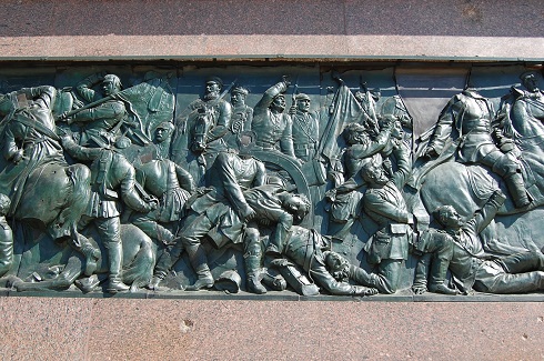 Reliefs im Sockelbereich der Siegessäule am Großen Stern erzählen von drei Kriegen,