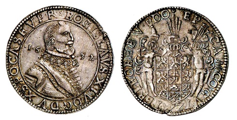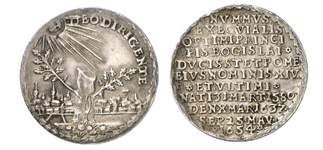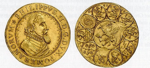 Die Münzen der pommerschen Herzöge sind im Unterschied zu denen aus Brandenburg-Preußen, Braunschweig, Mansfeld, Sachsen und anderen Ländern sowie einigen Städten des römisch-deutschen Reiches nicht unbedingt das, was man populär und gängig nennen würde, was mit der Kompliziertheit der Geld-, Münz- und Landesgeschichte zu tun haben mag. Wenn gelegentlich Stücke aus Gold und Silber vom Handel angeboten werden, sind ihnen gute Preise sicher. Als Herzog Bogislaw XIV. von Pommern anno 1637 starb, mitten im Dreißigjährigen Krieg, dauerte es noch 17 Jahre, bis man seinen Leichnam in Stettin feierlich beisetzen konnte. Da er kinderlos war, hauchte mit ihm das pommersche Greifengeschlecht sein Leben aus. Um dessen Land schlugen sich schwedische, kaiserliche und brandenburgische Söldner, überall verbrannte Erde hinterlassend. Nach Kriegsende einigten sich Schweden und Kurbrandenburg über die Modalitäten und Finanzierung der Beisetzung des Herzogs, und beide Seiten gaben 1654 Gedenkmünzen aus Silber und Gold heraus, die jeder Sammlung pommerscher Münzen zur Ehre gereichen.