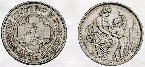 Die seit 1855 in der Schweiz mit einigen Unterbrechungen geprägten Schützentaler im Wert von fünf Franken beschwören mit ihren Wappen und Personendarstellungen die Wehrhaftigkeit der Eidgenossen und ihren Willen, keine Einmischung von außen zuzulassen. Da die Auflagen dieser anfangs staatlichen und seit 1984 privaten Prägungen relativ klein sind, muss man als Sammler zuweilen tief in die Tasche greifen, um die aus Silber- und Goldprägungen bestehende Serie vollständig zu bekommen. Innerhalb der Lateinischen Münzunion kam es wegen der Schützentaler einige Probleme gab. Weil sie das schweizerische Geldvolumen anschwellen ließ, wurde die Emission 1885 abgebrochen. Zwischen 1934 und 1939 hat man die Tradition mit neuen Werten zu 100 und fünf Franken wiederbelebt, und ab 1984 kommen Schützentaler als private Prägungen stets mit einem mittelalterlich kostümierten Schützen heraus. Bewaffnet ist der Mann mit einem Gewehr, mit einer Armbrust, einem Schwert und anderen Waffen.