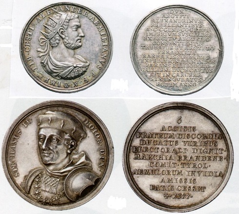 Als 1648 in Münster und Osnabrück über die Friedensbedingungen nach dem Ende des Dreißigjährigen Kriegs verhandelt wurde, kam eine umfangreiche Folge mit Bildnissen der beteiligten Gesandten heraus. Mit Bildnissen und Inschriften versehen, werfen sie ein interessantes Schlaglicht auf die Verhältnisse nach dem bis dahin schlimmsten aller Kriege, und es wird Sammlern schwer fallen, alle Stücke zusammen zu bekommen. Die Produzenten der Gesandtenmedaillen konnten oft auf eigenen Augenschein zurück greifen oder zogen Gemälde und Grafiken zurate. Deshalb kann man dieser Folge einige Glaubwürdigkeit bescheinigen. Anders ist es bei den in der Barockzeit beliebten römischen Kaisermedaillen oder solchen mit Köpfen von Herrschern aus grauer Vorzeit. Hier standen, wenn überhaupt, mehr oder weniger gelungene Skulpturen, Mosaiken und Miniaturen als Vorlagen zur Verfügung. Wo aber keine authentischen Zeugnisse existierten, musste die eigene Fantasie aushelfen. Das bedeutet, dass viele dieser numismatischen Porträts wenig glaubwürdig sind, aber vielleicht macht das auch ihren besonderen Reiz aus.