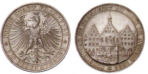 Die Münzen der Freien und Reichsstadt Frankfurt am Main gehören zu den am besten erforschten numismatischen Gebieten innerhalb der deutschen Münz- und Geldgeschichte. Das Buch von Paul Joseph und Eduard Fellner "Die Münzen von Frankfurt am Main nebst einer münzgeschichtlichen Einleitung und mehreren Anhängen" erschien 1896 und wurde später nachgedruckt. Bis heute ist es Sammlern und Forschern als Referenz- und Zitierwerk bestens bekannt. Vom späten 12. Jahrhundert bis zur Einverleibung der Stadt in den preußischen Staat nach dem deutsch-österreichischen Krieg von 1866 wurden in der Mainmetropole unzählige Geldstücke geprägt - Groschen und Goldgulden, Taler und Dukaten, Pfennige, Kreuzer und viele andere Werte, gut erkennbar am einköpfigen gekrönten Adler. Zu den Frühjahrs- und Herbstmessen kamen zahlreiche Händler und Kaufleute in die Stadt, die mit der Zeit zu einem wichtigen Banken- und Wechselplatz avancierte und heute als Sitz großer Geldhäuser das monetäre Zentrum unseres Landes darstellt. Von hier aus steuert die Europäische Zentralbank die Währungspolitik im "Euroland".