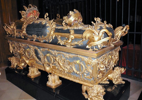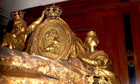 Die vom Hofbildhauer Andreas Schlüter geschaffenen barocken Prunksärge mit Bildnissen des ersten preußischen Königspaares Friedrich I. (Foto) und Sophie Charlotte sind über und über mit Kronen und Adlern geschmückt. Allegorische Figuren sagen uns, dass auch Fürsten nur Sterbliche sind.