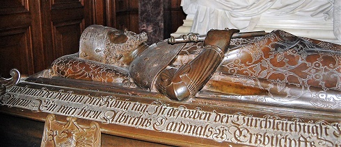 Der 1688 verstorbene Große Kurfürst Friedrich Wilhelm und seine zweite Gemahlin Dorothea (dieses Foto) liegen in der Hohenzollerngruft in kostbar dekorierten Särgen.