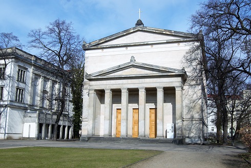 Die 1832 bis 1834 nach Plänen von Karl Friedrich Schinkel in "antikischem Stil" erbaute Elisabethkirche an der Invalidenstraße im Berliner Bezirk Mitte hat sich nach Jahrzehnten des Stillstandes und der Vernachlässigung in eine begehrte Tagungsstätte und Konzerthalle verwandelt. Zwar konnte beim Wiederaufbau der Kriegsruine die ursprüngliche Innenausstattung nicht zurück gewonnen werden, dafür aber strahlt das Gotteshaus außen die schlichte Schönheit eines von dem preußischen Stararchitekten von Dach bis Keller durchkomponierten Bauwerks aus. In den letzten Kriegswochen 1945 war die Elisabethkirche durch Bomben getroffenen und ausgebrannt. Das viele im Gottesdienstraum eingebaute Holz und die vertäfelte Decke gaben dem Feuer reichliche Nahrung. In DDR-Zeiten kannte man das Gebäude nur als eine Ruine, in die es hineinregnete und in deren Mauern sich nach und nach Bäume und Sträucher breit machten. Die vergoldeten Buchstaben DES HEREN WORT BLEIBET IN EWIGKEIT waren kaum zu lesen. Still war es um das in der Art griechischer Tempel errichtete Bauwerk, und so bestand für die in ein Biotop verwandelte Ruine wenig Hoffnung auf ihre Wiedergeburt zur Not auch in vereinfachter Form.
