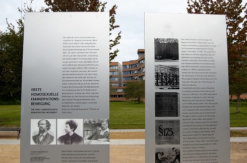 1919 errichtete Hirschfeld auf dem Gelände zwischen dem heutigen Bundeskanzleramt und der Kongresshalle, dem heutigen Haus der Kulturen der Welt, das Institut für Sexualwissenschaft. Das villenartige Haus mit der Adresse In den Zelten 9a/10 steht nicht mehr. Der Arzt war 1910 hierher gezogen. Sein Institut für Sexualwissenschaft wurde 1924 vom preußischen Staat als gemeinnützige Dr. Magnus-Hirschfeld-Stiftung anerkannt und verstand sich als "Stätte der Belehrung und Forschung" sowie als "Heil- und Zufluchtsstätte". Es trat mit wissenschaftlichen Studien hervor, die Berlin zu einem Zentrum der Sexualkunde werden ließen. 1933 wurde das Institut von den Nazis demoliert. Die dort versammelten Bücher und Schriften landeten bei der Bücherverbrennung am 10. Mai 1933 auf dem Scheiterhaufen, der auf dem Berliner Opernplatz angezündet wurde. Ein Trupp johlender Braunhemdenträger führte dem Triumphzug eine aus dem Institut gestohlene Hirschfeld-Büste voran. Da sich Hirschfeld gerade auf einer Weltreise befand, als Hitler an die Macht kam, blieb ihm der Anblick seines geschändeten und von der Nazipresse übel beleumdeten Instituts erspart. Wäre er in die Hand der Gestapo gefallen, hätte er die Torturen wohl kaum überstanden und niemals mehr in Freiheit gekommen. Hirschfeld starb 1935 in Nizza. Dass 2013 an der Bibliothek der Humboldt Universität zu Berlin zum 80. Jahrestag der Bücherverbrennung das "Archiv für Sexualwissenschaft" mit einigen tausend Büchern und Dokumenten neu gegründet werden konnte, ist eine späte Wiedergutmachung an dem Vorkämpfer für die Rechte der Homosexuellen.