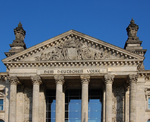 Die Frage, ob es noch zeitgemäß ist, öffentliche Gebäude überhaupt mit Inschriften zu versehen, stand Ende des 19. Jahrhunderts auf der Tagesordnung. Anlass war ein Streit um die Widmung für das neu erbaute Reichstagsgebäude. Als Wilhelm II. 1894 den Schlussstein legte, fehlte dem Haus das Motto über dem Portal. Der Kaiser konnte als Stifter nicht genannt werden, denn Bauherrin war der Deutsche Reichstag, die oberste Volksvertretung des Landes. Lange konnte der Monarch lange die mehrheitlich gewünschte Inschrift "Dem Deutschen Volke" verhindern. "Unliebsame Erörterungen" in Kauf nehmend, wie es an seinem Hofe hieß, schlug der Monarch die Formulierung "Der Deutschen Einigkeit" vor. Diesem Motto hielten Kritiker mehr oder weniger witzige Varianten wie "Dem deutschen Heere" entgegen, weil bei der Eröffnung fast nur Uniformen und Orden zu sehen waren. Der Historiker Heinrich von Sybel war überzeugt, es bedürfe keiner besonderen Angabe, weil man sehe, dass im Reichstagsgebäude "kein Confectionslager existirt".