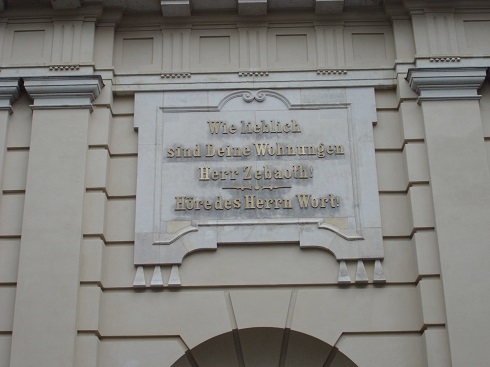Mit einigem Spürsinn wird man im Berliner Stadtbild weitere Widmungen dieser Art finden. Dazu gehört die Textzeile in hebräischen Lettern aus Jesaia 26,2 an der Fassade der vor 150 Jahren eröffneten Neuen Synagoge in der Oranienburger Straße, die sich mit "Tuet auf die Pforten, dass einziehe das gerechte Volk, das bewahret die Treue" übersetzen lässt. Bei der ehemaligen Singakademie, dem heutigen Maxim Gorki Theater, muss man genau hinschauen, um eine recht ungewöhnliche Widmung zu finden. Zwischen den Pilastern sind sechs vergoldete Buchstaben versteckt. Sie ergeben den Namen des berühmten Singakademie-Direktors Carl Friedrich Zelter. Das Bode Museum auf der Museumsinsel hatte ursprünglich die Inschrift KAISER FRIEDRICH MUSEUM sowie an der Seite zur S-Bahn hin BEGONNEN MDCCCIIC VOLLENDET MCCCCIV (1898 - 1904). Über dem Portal der Sophienkirche an der Sophienstraße ist "Wie lieblich sind Deine Wohnungen Herr Zebaoth! Höre des Herrn Wort" zu lesen, und im Giebel an einem Gebäude in der Jebenstraße am Bahnhof Zoo steht in sieben Zeilen UNTER DER REGIERUNG WILHELMS II. DEUTSCHEN KAISERS UND KOENIGS VON PREUSSEN ERB. V. D. KAMERADSCHAFTL. VEREINIGUNG D. OFFIZ. D. LANDWEHR INSP. BERLIN MDMIX (1909).