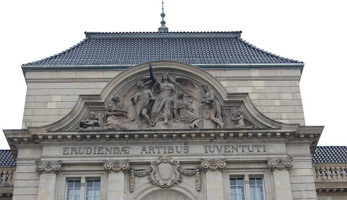 Wie solche Inschriften ausgesehen haben und was sie verkündeten, kann man noch heute am Portal des als Deutsches Historisches Museum genutzten Zeughauses Unter den Linden sehen, wo über dem vergoldeten Brustbild des ersten preußischen König Friedrichs I. und Bauherrn des Waffenarsenals eine achtzeilige lateinische Inschrift prangt, die in deutscher Übersetzung verkündet: "Für die Gerechtigkeit durch Waffen, für die Abschreckung der Feinde, für den Schutz der eigenen Völker und der Verbündeten hat Friedrich I., König in Preußen, Vater des Vaterlandes, fromm, erhaben, unbesiegt, dieses Zeughaus, das mit aller Art Kriegsgerät sowie mit Kriegsbeute und Trophäen angefüllt ist, vom Fundament her erbauen lassen 1706".