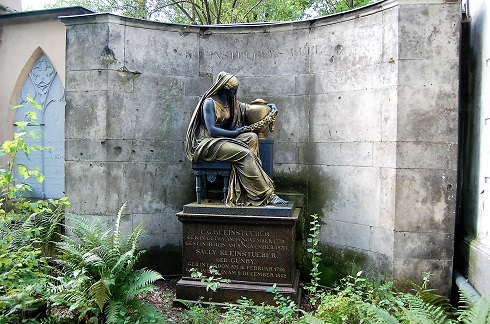 Beides kommt bei dem königlich-preußischen Münzmechaniker Johann Gottlieb Ernst Kleinstüber zusammen. Sein vor einigen Jahren sorgsam restauriertes Grabmal, eine besondere Rarität in der Berliner Friedhofsarchitektur, ist ganz dem Klassizismus der Schinkelzeit verpflichtet. Das Bildwerk auf dem Sankt-Georgen-Friedhof an der Greifswalder Allee, nur ein paar Fußminuten vom Alexanderplatz entfernt, zeigt eine sitzende Frau in antikisierender Gewandung. Sie symbolisiert die trauernde Gattin und bekränzt eine Urne. Die teilweise, jetzt schon wieder verblichene Vergoldung verleiht der Skulptur ganz aus Eisenkunstguss zusätzliche Strahlkraft. Die halbovale Wand hinter der Trauernden besagt, dass sich hier "Kleinstübers Ruhe" befindet. Die Inschrift auf dem Sockel aus rotem Granit nennt den Münzmechaniker und seine Frau Sally mit ihren Lebensdaten, verzichtet aber auf rühmende Worte und einen Hinweis auf die Profession des 1834 verstorbenen Beamten der Königlichen Münze zu Berlin.