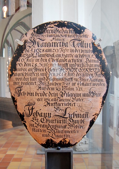 Von zwei anderen Berliner Grabmälern mit numismatischem Bezug ist zu berichten. In der Berliner Nikolaikirche, die zur Stiftung Stadtmuseum gehört, blieb eine Inschriftentafel vom Epitaph für Margarete Liebmann, geb. Toll, erhalten, die Gattin des Berliner Münzmeisters Johann Liebmann. Die in barock-geschwungener Schrift ausgeführte Widmung stammt von einem im Zweiten Weltkrieg zerstörten Ehren-Gedächtnis aus der Zeit um 1676, das an einem Strebepfeiler der Berliner Nikolaikirche befestigt war. Auftraggeber des ursprünglich reich mit Putten und Symbolen der Vergänglichkeit und Erlösung geschmückten Epitaphs war "Johann Liebman Sr. Churfürstl. Durchl. Zu Brandenburgk Wohlbestallter Müntzmeister und Quartin". Viele der unter seiner Leitung geprägten Münzen mit Bildnis und Wappen des Großen Kurfürsten Friedrich Wilhelm von Brandenburg sind am Münzmeisterzeichen IL (Johann Liebmann) zu erkennen. Der Münzmeister und Wardein arbeitete in einer Zeit ziemlich ungeordneter Verhältnisse an der Berliner Münze, um es vorsichtig zu sagen. Betrug und Unterschleif waren an der Tagesordnung, und dagegen richteten die immer wieder von Neuem bekräftige Ermahnungen und verschärften Strafandrohungen nicht viel aus.