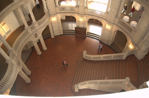 Die Architektur des nach Plänen zwischen 1901 und 1913 nach Plänen von Paul Thoemer, Rudolf Mönnich und Carl Vohl erbauten Gerichtspalastes ist imposant. Wer das mit einem riesigen Wappenschild über dem Eingang geschmückte Haus mit riesiger Kuppelhalle und eindrucksvoller Treppenanlage betrat, sollte sich klein und hilflos vorkommen, und auch heute kann man sich der kaiserzeitlichen Beeindruckungsarchitektur kaum entziehen. Im Unterschied zu anderen Berliner Großbauten hat man nach dem Zweiten Weltkrieg das Kammergerichtsgebäude nicht seines neobarocken Dekors innen und außen beraubt und die Verzierungen aus Sandstein und Stuck dort belassen, wo man sie in der Kaiserzeit angebracht hat.