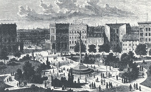 Nach und nach mauserte sich das ehemals ärmliche Viertel am Ende der Friedrichstraße zu einer gutbürgerlichen Wohngegend und wurde nach der Reichseinigung mit repräsentativen Wohn- und Geschäftsbauten besetzt. Beherrschten Mitte des 19. Jahrhunderts noch vier- bis fünfgeschossige Häuser das Bild, so trumpfte der Platz bis zu seiner Zerstörung durch Gebäude mit ausladendem Säulen- und Skulpturenschmuck auf, wie man sie so sehr in Gründerzeit liebte. Mit diesen Bauten demonstrierte das hier wohnende Groß- und Bildungsbürgertum, wer im Reich der Hohenzollern das Sagen hat.