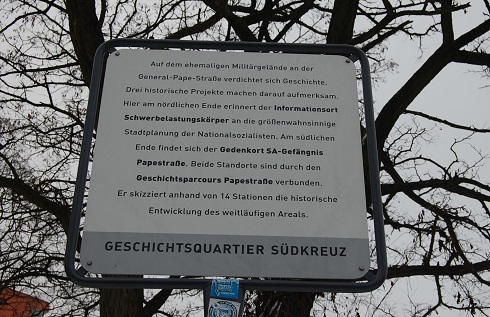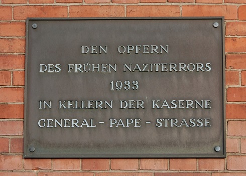 Seit Sommer 2013 ist im Keller der ehemaligen SA-Kaserne Papestraße mit der Adresse Werner-Voß-Damm 54 a unweit des S-Bahnhofs Südkreuz eine Gedenkstätte eingerichtet. Sie dokumentiert in Bild und Schrift die Zustände in dem SA-Gefängnis und schildert auch, wie die Häftlinge versuchten, einander beizustehen. Das dort wütende SA-Feldjägerkorps zog im Dezember 1933 in die Alexanderkaserne gegenüber der Museumsinsel im Berliner Bezirk Mitte um und verrichtete dort seine schweren Misshandlungen weiter. Nach dem Ende der NS-Herrschaft verblasste die Erinnerung an die Verbrechen in der SA-Hölle Papestraße. Erst in den frühen neunziger Jahren konnte das Haus H als derjenige Ort identifiziert werden, in dessen Kellerräumen die Menschen unter qualvollen Bedingungen bei Kälte, Hunger, Durst und ständiger Todesangst zwischen wenigen Tagen und mehreren Monaten gefangen gehalten wurden.
