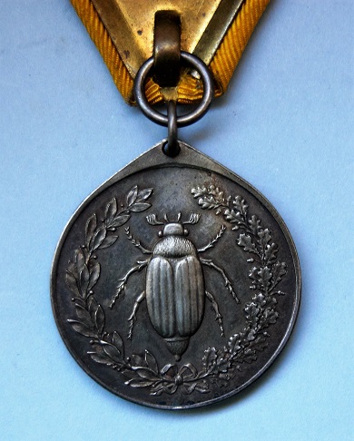 Ehemalige Angehörige des in Berlin stationierten Garde-Füsilier-Regiments zu Fuß schmückten sich 1926 mit einer Medaille am gelben Band, die dem hundertjährigen Bestehen dieser von König Friedrich Wilhelm III. gegründeten und anfangs in Potsdam stationierten Truppe gewidmet wurde. Von 1851 bis 1918 waren Teile des Regiments in der Berliner Maikäferkaserne stationiert. Der Name kommt hat mit kessen Potsdamer Kindern zu tun, die die auf dem Bornstedter Feld bei Potsdam die zu Übungen ausgerückten Soldaten mit Maikäfern beworfen und sich auf diese Weise über sie lustig gemacht haben sollen. So wenigstens lautet eine allgemein anerkannte Deutung.