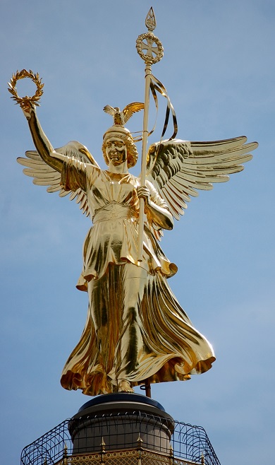 Vor ein paar Jahren war die Siegessäule am Großen Stern im Bezirk Tiergarten eine große Baustelle. Die Restaurierungsarbeiten an der Goldelse, wie das Kriegerdenkmal aus dem 19. Jahrhundert im Volksmund heißt, waren wegen Korrosionsschäden an den Metallteilen nötig, aber auch weil Risse am Säulenschaft und seinem Unterbau geschlossen werden mussten, um das Eindringen von Wasser aufzuhalten. Durch die Neuvergoldung der Victoria mit der Schuhgröße 92 sowie der in die Säule eingefügten Kanonen und Blattgehänge hat die Siegessäule wieder ihre alte Schönheit zurück bekommen. Einbezogen in Arbeiten waren auch die Mosaiken in der Säulenhalle, über der sich die Säule erhebt. Vom damaligen Hofmaler Anton von Werner geschaffen, verklären die aus unzähligen bunten Steinchen bestehenden Wandbilder die Kriege von 1864, 1866 und 1871, die unter preußischer Führung zur deutschen Reichseinigung am 18. Januar 1871 führten.