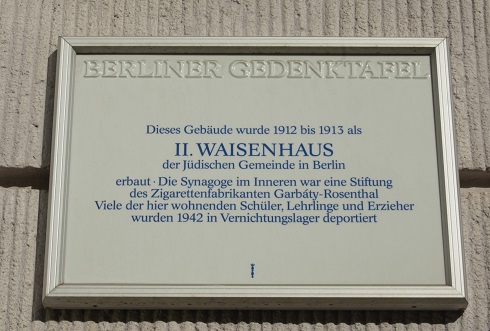 Das 1882 erbaute "Erziehungshaus Pankow" hatte ursprünglich jüdische Kinder aufgenommen, die vor den Pogromen im zaristischen Russland in das Deutsche Reich geflohen waren. Da dieses Asyl nicht ausreichte, um auch deutsche Waisenkinder zu beherbergen, wurde kurz vor dem Ersten Weltkrieg das monumentale Waisenhaus an der Berliner Straße errichtet. Dessen Herzstück ist der von dem Pankower Zigarettenfabrikanten Josef Garbáty gestiftete Betsaal, dessen prächtige Kassettendecke in den vergangenen Jahren restauriert wurde und bei Veranstaltungen aller Art bewundert werden kann.