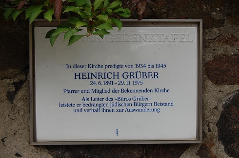 Das Büro Grüber unterstand der Aufsicht durch Adolf Eichmann, des Organisators der jüdischen Transporte in die Vernichtungslager. Bei einem Gespräch habe der SS-Offizier ihn aufgefordert zu erklären, warum er sich für diese Juden einsetzt, berichtete Grüber später. Er habe doch keine jüdische Verwandtschaft, und er habe es auch nicht nötig, für diese Menschen einzutreten, niemand werde ihm diesen Einsatz danken. Der Pfarrer antwortete, Gott habe ihm genau das zur Aufgabe gemacht. Grüber ließ sich nicht einschüchtern, wurde 1940 verhaftet und kam erst ins KZ Sachsenhausen und dann ins KZ Dachau, von wo aus er 1943 schwerkrank entlassen wurde. Unter strengen Auflagen durfte er in Kaulsdorf weiter amtieren. Am 22. April 1945 ging er mit weiteren Unerschrockenen der einmarschierenden Roten Armee entgegen und half so Blutvergießen bei der Übergabe des Berliner Ortsteils zu verhindern.