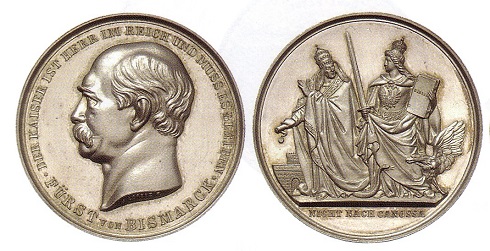 Der deutsch-französische Krieg und seine Ergebnisse brachten weitere Bismarck-Medaillen hervor, die während der deutschen Besetzung von Paris hergestellt und verkauft wurden. Unter diesen Jetons mit Bildnissen des Fürsten Bismarck auf der Vorderseite sowie Porträts führender Politiker der französischen Republik sind Spottmedaillen eine Ausnahme. Manche Medailleure waren unsicher, was den neuen Titel Wilhelms I. betrifft, weshalb dieser auch auf Bismarck-Medaillen als "Kaiser der Deutschen" genannt wird. Der Kanzler wird auf weiteren Prägungen als Redner im Reichstag mit dem Ausspruch "Wir Deutschen fürchten Gott, aber sonst nichts in der Welt" zitiert. Dieses Wort kommt auf zahllosen ihm gewidmeten Medaillen vor, die in großer Zahl auf den Markt geworfen wurden.