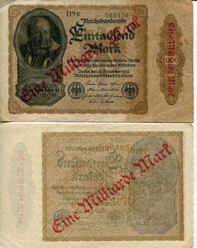 Mit der Gründung der Deutschen Rentenbank am 16. Oktober 1923 und der Einführung der Rentenmark einen Monat später hatte die unselige Inflation ein Ende. Für kurze Zeit hat man die höheren Milliarden- und Billionenscheine im Geldverkehr neben der neuen Rentenmark verwendet. Doch wurden sie alsbald eingezogen und im Sommer 1925 für ungültig erklärt. Angemerkt sei, dass viele Geldscheine der Inflationszeit, darunter auch regionale Notgeldausgaben, kleine Kunstwerke sind. Anderen hingegen sieht man an, dass sie billig und schnell fabriziert und in Umlauf gegeben wurden. Das erreichte man nur durch einfache Schriftlösungen und Verzicht auf anspruchsvolle Bilder und Porträts.