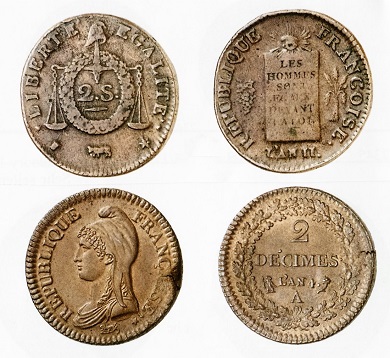 Auf den deutschen Münzen dieser Zeit wurde nach und nach der fürstliche Lorbeer durch das bürgerliche Eichenlaub abgelöst. Ein frühes Beispiel für den sich im Laufe des 19. Jahrhunderts verstärkenden Trend ist ein probeweise geprägtes Fünf-Francs-Stück von 1808, mit dem Großherzog Carl Friedrich von Baden den französischen Kaiser und "Beschützer des Rheinbundes", Napoleon I., ehrte. Während der Kaiserkopf die Vorderseite der ungewöhnlichen Silbermünze ziert, umschließen Titel und Name des Großherzogs einen Eichenkranz mit der Wertangabe in der Mitte. Reichlich Eichenlaub ist auf preußischen Reichstalern und kleineren Werten aus dieser Zeit zu sehen. Ein Eichenkranz umschließt die probeweise hergestellten "Ausgleichungsmünzen" zu zehn und fünf Pfennigen, auf denen die Borussia, Preußens Symbolfigur, segnend dargestellt ist. Auch der anlässlich des Besuchs des Kronprinzen Friedrich Wilhelm (IV.) im Jahre 1812 geprägte Kronprinzentaler mit der Inschrift GOTT SCHÜTZE IHN UND DEN THEUREN ERBEN SEINES THRONS verwendet einen Eichenkranz als Schmuck.