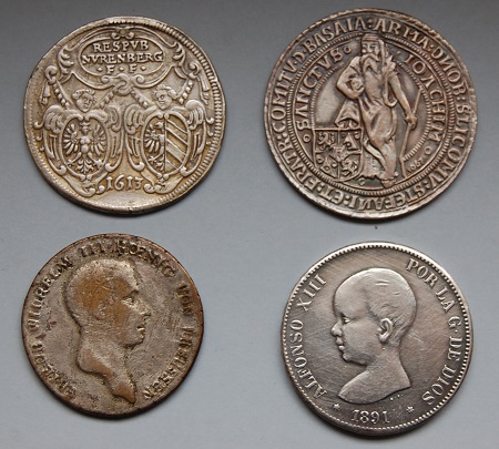 Gefälscht wurde in der damaligen Zeit und später eigentlich alles, was zu fälschen war. Das betraf normale Kursstücke und Gedenkmünzen, mit denen man bezahlte, aber auch numismatische Raritäten, die ein eigenes Thema sind. Die hohe Kaufkraft der Münzen war zu verlockend. So ist auch bei den silbernen Gedenkmünzen zu drei und fünf Mark, aber auch bei dem bekannten Fünfmarkstück "Eichenbaum" nach einem Entwurf von Josef Wackerle Vorsicht angebracht, das ab 1927 herauskam. Das "Sinnbild deutscher Kraft" zeigt einige verdorrte Äste, die angeblich auf die abgetretenen deutschen Gebiete hindeuten sollen. Die seltene Ausgabe von 1933 mit dem Hamburger Münzzeichen J sollte genau untersucht werden, denn es ist schon vorgekommen, dass die letzte Zahl manipuliert wurde, um eine preisliche Aufwertung zu erreichen.
