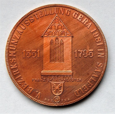 Im Saalfelder Franziskanerkloster wurde bei Grabungen mehrer Keller nördlich der Klausur zahlreiche Reste von Bleiglasfenstern gefunden, doch die Sensation war ein Goldgulden des Kölner Erzbischofs Dietrich II. von Moers, der von 1414 bis 1463 regierte. Die mit einer Petrusfigur sowie einem Wappenschild im Vierpass geschmückte Münze ist ein Erzeugnis des Rheinischen Münzvereins, in dem sich die Kurfürsten von Köln, Trier und Mainz zusammenschlossen, um Geld nach einheitlichem Standard und zum gemeinsamen Nutzen prägen zu können. Das jetzt aufgefundene und in der gleichen Ausgabe der Archäologiezeitschrift vorgestellte Goldstück besaß einen hohen Kaufwert und war das höchste Nominal seiner Zeit. Das im Zuge der Reformation säkularisierte Saalfelder Kloster diente ab 1534 als Lateinschule und war von 1551 bis 1735 auch herzogliche Münzstätte. In den Prägebetrieb einbezogen war auch der westliche Teil der leerstehenden Klosterkirche, die so zu ihrer umgangssprachlichen Bezeichnung "Münzkirche" kam. 1904 wurde im einstigen Ostkreuzgang das Saalfelder Museum eröffnet. Helmut Caspar