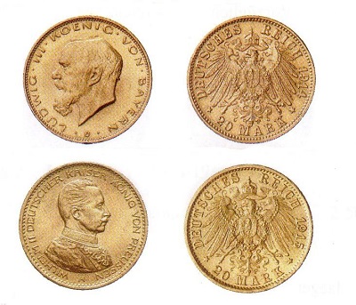 Wenn sie gelegentlich auf Auktionen angeboten werden, erzielen diese Raritäten erhebliche Preise. In der Begründung zum Münzgesetz von 1924 heißt es, für die neuen Goldmünzen seien ein Gewichts- und Mischungsverhältnis gleich dem der bisherigen Währung vorgeschrieben. "Da das Reich voraussichtlich in der nächsten Zeit noch nicht in der Lage sein wird, auf Reichsmark lautende Goldmünzen zu prägen, empfiehlt es sich, die alten Goldmünzen den Reichsmarkmünzen gleichzustellen und auf diese Weise als Ersatzmünzen wieder in den Verkehr einzuführen." Das hätte bedeutet, dass man in der Weimarer Republik auch mit Goldstücken bezahlen konnte, auf denen Köpfe deutscher Bundesfürsten abgebildet sind. Ob das alte Reichsgold nach dem Ende der Inflation tatsächlich zum Bezahlen verwendet wurde, kann nicht gesagt werden. Bekannt ist nur, dass damals gute alte Gold- und Silbermünzen häufig nur ein wenig über ihrem Metallwert gehandelt wurden. Das waren für Sammler von heute, die ein Vielfaches zahlen müssen, geradezu paradiesische Zustände!