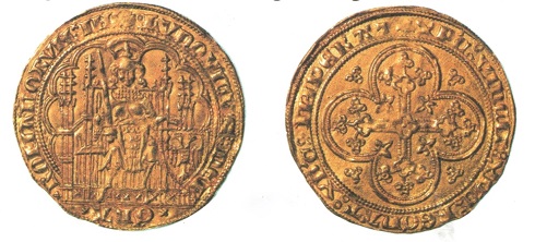 Dass Ludwig der Bayer eine ansehnliche Goldmünzenprägung entfalten konnte, lag an umfangreichen Hilfszahlungen, die er vom englischen König Eduard III. als Gegenleistung für militärische Hilfe im Krieg Englands gegen Frankreich erhielt. Die ungeheure Summe von 300 000 Goldgulden wurde eingeschmolzen und in die Goldschilde mit dem Bild Ludwigs des Bayern umgeprägt. Diese Münzen sind etwas schwerer als die üblichen Goldgulden und orientieren sich im Duktus an den im französisch-niederländischen Raum umlaufenden Münzen. Da die Goldschilde etwas größer und schwerer als die üblichen Goldgulden sind, konnten die Stempelschneider den Herrscher auch besser im Schmuck seiner Insignien darstellen. Schaut man genau hin, dann ist das Bildnis nicht lebenswahr, sondern eher ein Schema. Erst zwei Jahrhunderte später wurde es üblich, Monarchen auf Münzen mit realistischen Porträts darzustellen.