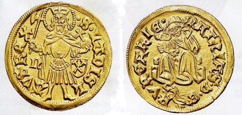 König Ludwig I. von Ungarn, auch Ludwig der Große genannt, verfügte über reichhaltige Goldlagerstätten, die er in klingende Münze verwandelte. Auch seine ersten Goldgulden ahmten noch die Florentiner Florene nach. Doch ließ der Herrscher das Münzbild verändern. So zeigen seine in großer Zahl geprägten Goldstücke auf der Vorderseite das Doppelwappen von Anjou und Ungarn sowie auf der Rückseite den stehenden König Ladislaus den Heiligen mit Erdkugel und Streitaxt. Im Gegensatz zu italienischen und deutschen Goldmünzen behielten die ungarischen Goldgulden ihren ursprünglichen Feingehalt und Gewicht. König Matthias I. Corvinus ließ 1467 die Muttergottes mit dem Jesuskind auf den Goldgulden darstellen, kombiniert mit seinem Bildnis. Während in den folgenden Jahrhunderten die Herrscherbildnisse wechselten, schmückte die als "Patrona regni hungariae" verehrte Muttergottes bis ins 19. Jahrhundert zahllose ungarische Geldstücke.