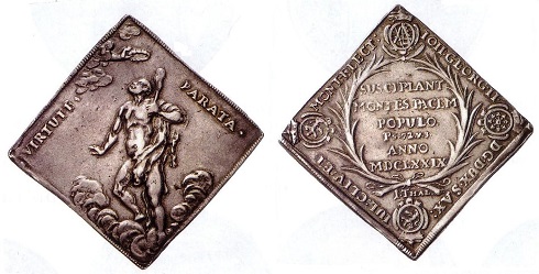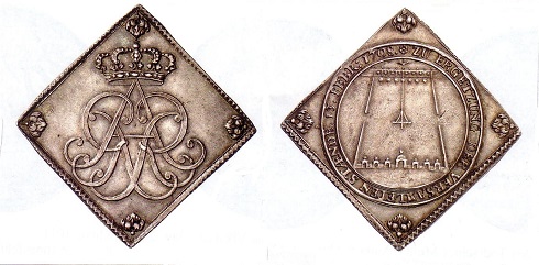 Aus der Regierungszeit des sächsischen Kurfürsten Johann Georg II. (1656-1680) sind zahlreiche Gedenkmünzen überliefert, darunter auch einige Talerklippen anlässlich von Schützenfeste, die an Teilnehmer zur Erinnerung und als Prämien verschenkt wurden. Als 1669 ein Prinz geboren wurde, der spätere Johann Georg IV., feierte der glückliche Großvater dies durch das so genannte Herkulesschießen und ließ eine Talerklippe mit dem Monogramm IG4 (Johann Georg IV.) und dem Säugling in der Wiege prägen. Schaut man genau hin, dann erkennt man, dass der Neugeborene eine Schlange würgt. Das Bild drückt den Wunsch aus, aus dem kleinen Prinzen möge ein großmächtiger Hercules saxonicus werden. Darstellungen des kindlichen Herkules als Schlangentöter waren in der Barockzeit beliebt, und so beschwor die Allegorie Sachsens Glanz und Gloria. Um der edlen Schießkunst auch in der schlechten Jahreszeit und bei Regen ungestört nachgehen zu können, ließ Johann Georg II. in Dresden eine spezielle Halle errichten. Die Einweihung dieses Schießhauses war 1678 Anlass einer weiteren Klippe. Alle diese Sonderformen stellen besondere Zierden einer jeden Sachsensammlung dar.