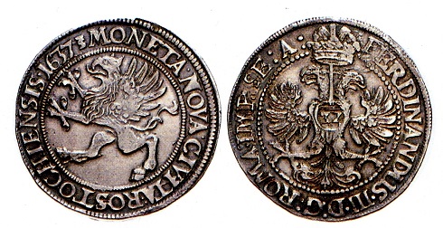 Darstellungen von Mischwesen in menschlicher und tierischer Gestalt sind keine Kinder der Neuzeit. Diese Ungeheuer in Menschen- und Tiergestalt waren im Vorderen Orient, der klassischen Antike und im Fernen Osten beliebt. Wenn wir europäische Münzen und Wappen aus der Zeit nach 1500 suchen, dann finden wir Einhörner, geflügelte Löwen und Pferde sowie doppelköpfige Adler und gräuliche Drachen mit feuerspeiendem Maul. Auf Geprägen aus Basel erkennen wir einen Basilisken. Diesem schrecklichen Mischwesen aus der antiken Mythologie mit dem Oberkörper eines Hahns und dem Unterleib einer Schlange wurde nachgesagt, dass sein Blick versteinernd wirkt und sein Atem giftig ist. Indem der Basilisk das Baseler Wappen bewacht, hält er Feinde von der Stadt fern, lautet die Botschaft. Münzen aus Basel sind überdies am so genannten Baselstab oder Baslerstab zu erkennen. Der Hirten- und Bischofsstab findet sich im Wappen von Städten und Dörfern rund um die schweizerische Stadt und auf ihren Münzen und Medaillen. Obwohl sich Basel 1529 zur Reformation bekannte und der ortsansässige Bischof die Stadt verließ, behielt sie dessen heraldisches Symbol. Daher kann man das bis zum 19. Jahrhundert unter Regie der Stadt geprägte Metall schon von weitem als aus Basel stammend erkennen.