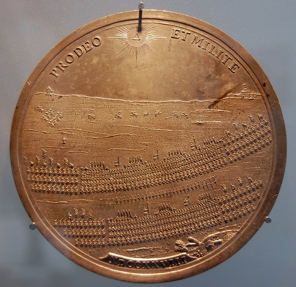 Friedrich Wilhelm I. hatte nicht nur an seiner Riesengarde Gefallen, sondern auch an riesigen Silbermedaillen, die anlässlich von Truppenschauen und Feldlagern geprägt wurden. Die von den Stempelschneidern Friedrich Marl und Peter Paul Werner geschaffenen Stücke, die sich im Besitz des Münzkabinetts der Staatlichen Museen zu Berlin Preußischer Kulturbesitz befinden, haben einen Durchmessern bis 132 Millimeter und wiegen mehrere hundert Gramm. So groß sie auch sind, zu den Meisterwerken barocker Medaillenkunst zählen sie allerdings nicht. Sie zeigen aber sehr gut, worauf es dem König von Preußen ankam - die Präsentation sauber ausgerichteter Regimenter und die Zurschaustellung militärischer Macht. Dargestellt ist auf der Vorderseite der Herrscher mit Zopf und angetan mit einem Hermelinmantel und dem Band des Schwarzen Adlerordens über der Brust. Auf der Rückseite erkennt man unter der Devise PRO DEO ET MILITE (Für Gott und das Heer) die Grenadiere in exakt ausgerichteten Reihen angetreten.