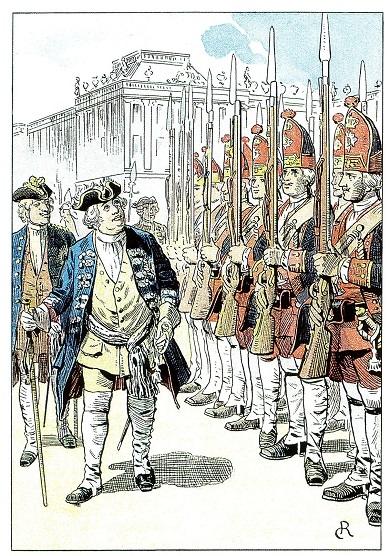 Während andere Fürsten der Barockzeit Unsummen für Juwelen, Mätressen, Schlösser und Kunstsammlungen ausgaben, delektierte sich der preußische Soldatenkönig Friedrich Wilhelm I. (reg. 1713 bis 1740) an seinen Langen Kerls. Er schuf ein ausgeklügeltes System, um überall in Europa besonders hoch gewachsene, kräftige, gesunde und schöne junge Männer in sein Königsregiment Nr. 6 zu holen, und ließ sich diese Marotte viel Geld kosten. Der Monarch konnte sich der Bewunderung seiner fürstlichen Kollegen sicher sein, die nach preußischem Vorbild ebenfalls Riesen-Regimenter aufstellten. Außerdem hatten große Grenadiere auch einen praktischen Zweck, denn sie kamen besser mit den damaligen Flinten klar als solche von durchschnittlicher Körperhöhe. Wer mindestens 1,88 Meter groß war, die brachialen Methoden der Werber überstand und ihren Versprechungen glaubte, kombiniert mit stattlichen Handgeldern, und sich einstellen ließ, geriet allerdings vom Regen in die Traufe und dürfte seine Unvorsichtigkeit bald bereut haben. Die Riesengarde jungen Adligen, Bauern und Handwerkern, ja auch Kleinkriminellen und allerlei zwielichtigen Gestalten gewisse Sicherheiten, zumal sie von dem im Grunde seines Herzens friedfertigen Monarchen nie richtig Pulverdampf und Kugelhagel ausgesetzt Ende vieler Angehöriger des ebenso gefürchteten wie belächelten Königsregiments.