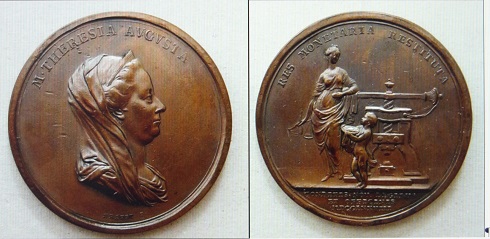 Während sich der Gemahl sich den Naturwissenschaften sowie seiner Münzsammlung und der Vermehrung seines Vermögens widmete und sich mit diversen Hofdamen vergnügte, prägte die energische Maria Theresia eine ganze Epoche, das theresianische Zeitalter. Dem Kaiserpaar war viel an einem geordneten Münz- und Geldwesen gelegen. Während ihrer Regierungszeit von 1740 bis 1780 ließ sie Ereignisse und Gestalten von einiger Bedeutung durch prächtige Medaillen verewigen. In dieser "Histoire métallique" kommen Ausgaben vor, mit denen Fleiß und Kunstfertigkeit der Münzarbeiter belohnt wurden. Die Prämienmedaillen mit Porträts sowie Arbeitern an der Spindelpresse und allegorischen Bildern sollten in den Prägeanstalten der weit zerklüfteten Monarchie Fleiß, Sorgfalt und Treue zur Krone sorgen.