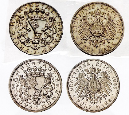 Verschiedene Städte des Wendischen Münzvereins prägten bis ins 19. Jahrhundert hinein eigene Münzen, wenn auch zumeist bescheidene Nominale. Die Hansestädte Bremen, Hamburg und Lübeck konnten ihren Status als Bundesstaaten mit jeweils einer Stimme im Bundesrat auch in der Kaiserzeit bewahren und ließen zur Freude der Sammler eigene Münzen zu zwei, drei und fünf Mark sowie Goldmünzen prägen.