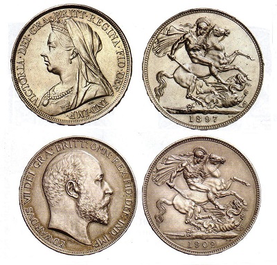 Dass die Königsfamilie den Namen Windsor annahm und zugleich ihren deutschen Namen Sachsen-Coburg und Gotha ablegte, hat mit dem Ersten Weltkrieg zu tun. Bis zu dessen Beginn am 1. August 1914 waren die Familien Hohenzollern mit dem deutschen Kaiser und preußischen König Wilhelm II. an der Spitze und die englischen Coburger gut befreundet und vielfach miteinander verwandt. Wilhelm II. war ein Enkel von Queen Victoria, die ihrerseits mit dem Prinzen Albert von Sachsen-Coburg und Gotha verheiratet war und mit ihm eine gute Ehe mit vielen Kindern geführt hatte. Als Albert 1861 in Windsor Castle starb, war die Königin untröstlich und wurde nur noch in dunklen Kleidern und schwarzem Schleier gesehen. Victoria prägte eine ganze Epoche, das bis zu ihrem Tod 1901 andauernde victorianische Zeitalter, in dem sich England zu einer Weltmacht mit riesigem Besitz an Kolonien entwickelte. 1876 legte sich die Monarchin den Titel einer Kaiserin von Indien zu, was dann auch auf Münzen vermerkt wurde. Als Indien 1947 seine Souveränität erlangte, verzichtete König Georg VI., der Vater von Elizabeth II., auf den kaiserlichen Titel, was auch zu Veränderungen auf den mit seinem Bildnis geschmückten Geldstücken führte.