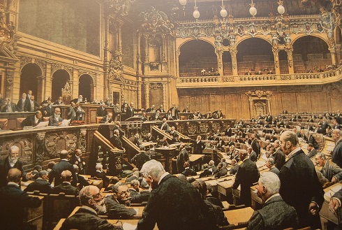 Die auf fünf Ebenen aufgebaute Schau im Turm des Deutschen Doms und seitlichen Räumen beginnt mit der französischen Revolution von 1789 und beschreibt die Versuche mutiger Visionäre im 19. Jahrhundert, die Fürstenherrschaft und die deutsche Zersplitterung zu überwinden, um dann bei der Revolution von 1848 zu verweilen und die Ursachen ihres Scheiterns darzustellen. Geschildert wird sodann die Entwicklung des Parlamentarismus im 1871 gegründeten Kaiserreich, wobei man einiges über die heftigen Auseinandersetzungen der Parteien von ganz rechts bis ganz links erfährt. Da viel um die Person und Politik des ersten Reichskanzlers Otto von Bismarck gestritten wurde, wundert es nicht, diesem auf Bildern und Skulpturen leibhaftig zu begegnen. Im Abschnitt über die nach dem Ende der Monarchie 1918 ausgerufene Weimarer Republik wird man mit deren Errungenschaften, aber auch ihren Schwächen und den Ursachen konfrontiert, die 1933 zur Zerstörung des bei allen seinen Schwächen doch funktionierenden parlamentarischen Systems durch die Nationalsozialisten mit den bekannten schrecklichen Folgen führten.