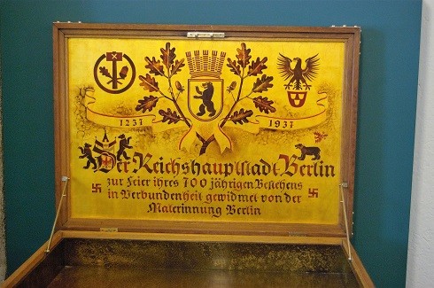 Die Festwoche im August 1937 zur 700-Jahrfeier Berlins malte die Entwicklung der Stadt "vom kleinen Vorposten des Deutschtums im Osten zur Weltstadt und zur Hauptstadt eines fest begründeten und zum ersten Male in seiner Geschichte wahrhaft einheitlichen Volkes" in rosigen Farben aus. Bescheiden seien die Anfänge der Stadt in der Zeit der brandenburgischen Markgrafen gewesen, so lautete die Botschaft von damals, doch schon immer hätten sich die Berliner ihrer Feinde erwehrt und für Ruhe, Ordnung und Sicherheit gesorgt. Unter den Hohenzollern sei es langsam aufwärts gegangen. Beschützt durch eine starke Armee und geleitet von weitsichtigen Staatsmännern habe sich die Stadt zu einer aufstrebenden Metropole gemausert, in der es sich gut leben ließ. Dass an dieser Entwicklung in hohem Maße zugewanderte Juden, Franzosen und Leute aus Böhmen Anteil hatten, ja dass die preußische Haupt- und Residenzstadt ohne sie ohne Glanz und Ausstrahlung geblieben wäre, wurde in der Lobhudelei selbstverständlich ausgeblendet.