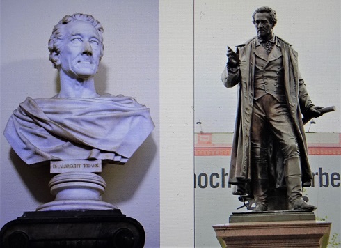 Auf dem Berliner Schinkelplatz nahe der Straße Unter den Linden, dort, wo irgendwann einmal die Bauakademie aufgebaut werden soll, erheben sich drei Bronzestandbilder. Sie erinnern an Peter Christian Beuth; den Direktor der Technischen Deputation für das Gewerbe und Chef des Gewerbeinstituts, den Architekten und Direktor der Oberbaudeputation Karl Friedrich Schinkel und den Agrarwissenschaftler Albrecht Daniel Thaer. Beuth, der Förderer von Industrie und Gewerbefleiß, nach dem auch eine der ersten preußischen Lokomotiven von Borsig benannt wurde, ist stehend mit dozierender Geste dargestellt. Er erscheint ein wenig steif, sein Temperament und geistige Beweglichkeit, die ihm Zeitgenossen bescheinigten, ist wenig viel zu spüren.
