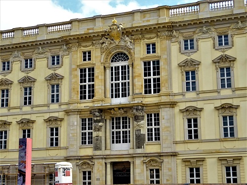 Es lohnt sich, beim Anblick der neuen Schlossfassade weiter ins Detail zu gehen. Johann Eosander von Göthe, Andreas Schlüters Nachfolger als leitender Baumeister, erweiterte das Berliner Schloss nach Westen und verdoppelte damit dessen Frontenlänge. Er übernahm grundsätzlich Schlüters Entwurf für die Lustgartenfassade, veränderte diesen jedoch bei den Portalen IV und V. So fügte er ihnen auf der Höhe des ersten Stockwerks die aus muskulösen Gebälkträgern bestehenden Hermenpilaster hinzu. Mit der Ausführung dieser Skulpturen könnte seinerzeit der in Kursachsen tätige Bildhauer Balthasar Permoser beauftragt worden sein. Schriftliche Belege für diese Zuschreibung existieren allerdings nicht. Wenn das aber so war, dann brachte der vor allem mit der Ausschmückung des Dresdner Zwingers befasste Permoser einen Hauch des feinen und phantasievollen sächsischen Barock nach "Spree-Athen, das heißt in die preußische Haupt- und Residenzstadt Berlin.