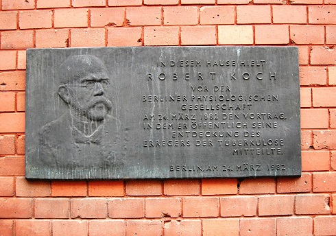 Das 1916 von Louis Tuaillon vollendete Koch-Denkmal aus Marmor kehrte nach langer Abwesenheit im März 1982 gereinigt und restauriert auf das Charité-Gelände zurück, allerdings nicht auf seinen originalen Standort. Die Figur zeigt den Entdecker des Erregers der Tuberkulose und Professor für Hygiene an der Friedrich-Wilhelms-Universität (Humboldt-Universität) sowie Leiter des Instituts für Infektionskrankheiten der Charité sitzend und bekleidet mit einem langen Arztkittel. Eine Hand ist auf die Stuhllehne gestützt, die andere ruht auf dem Knie. Robert Koch, Träger des Nobelpreises für Medizin des Jahres 1905 und Mitglied der Akademie der Wissenschaften, schaut selbstbewusst und konzentriert auf die Passanten. Der Bildhauer hat auf allegorische Zutaten, auch auf dicke Folianten, Schriftrollen und Gerätschaften verzichtet, wie man sie von anderen Gelehrten- und Künstlermonumenten des 19. Jahrhunderts kennt. Die Rückseite des Sockels trägt die Inschrift "Ich wünsche, dass im Kriege gegen die kleinsten aber gefährlichsten Feinde des Menschengeschlechts eine Nation die andere immer wieder überflügeln möge. R. Koch".