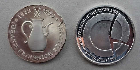 Gelegenheit, sich auf Münzen oder Medaillen zu verewigen, hatte der eingangs erwähnte Goldmacher und Porzellanerfinder Johann Friedrich Böttger nicht. Der Sohn des gräflich reußischen Münzwardeins Johann Adam Böttger begann 1696 in Berlin eine Ausbildung beim Apotheker Friedrich Zorn, die er 1701 beendete. Im gleichen Jahr erregte er durch Experimente Aufsehen, bei denen er preußische Doppelgroschen in Goldstücke verwandelt haben soll. Das dafür nötige Wissen soll Böttger von einem Adepten namens Lascaris bekommen haben. Verbindung hatte der angehende Apotheker auch zu dem berühmten Chemiker Johann Kunckel, der sich als Erfinder des durch Zusatz von Goldstaub erzeugten Rubinglases einen Namen machte.
