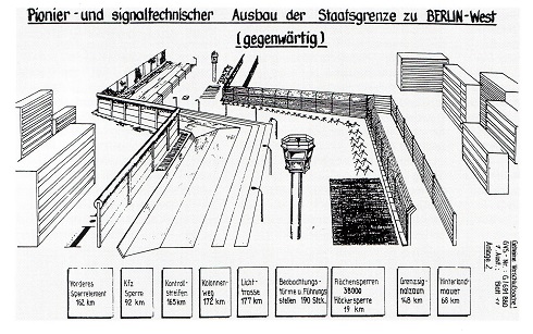Bis zu ihrem Fall am 9. November 1989 wurde die streng bewachte Mauer rund um Berlin und entlang der deutsch-deutschen Grenze ausgebaut, so dass kaum noch ein Durchkommen möglich war.
